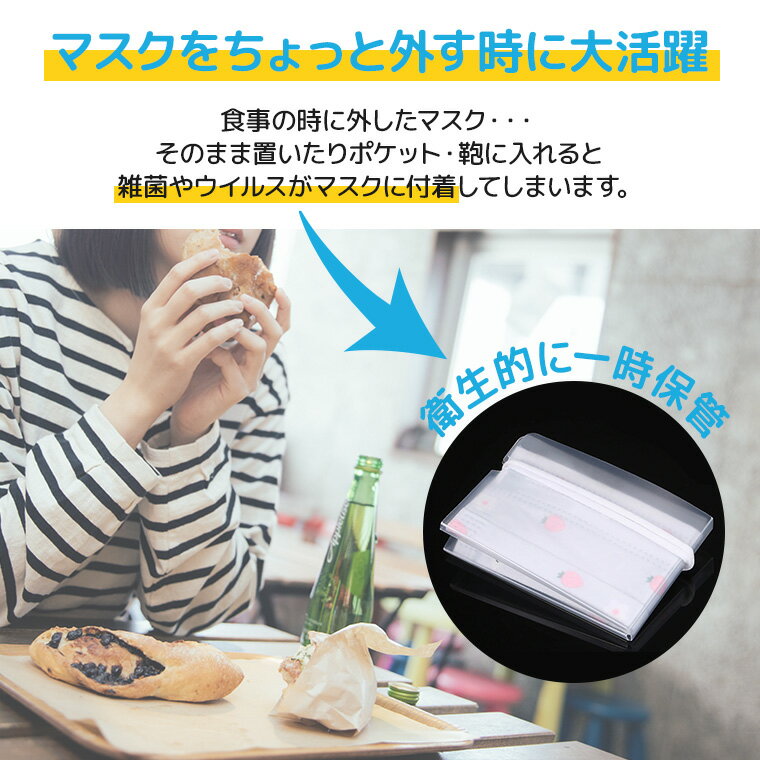 マスクのちょい外しに 食事の時など、マスクを外してそのままテーブルに置くと雑菌やウイルスが付着して不衛生に・・・。